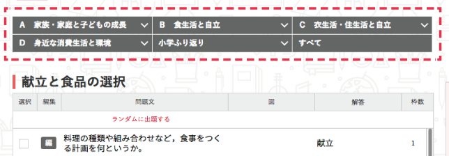 ランダム出題ボタンを押すと,選んだ単元の問題からランダムに問題が選ばれます。 ランダム出題ボタンは押すたびに異なる問題が選び直されます。 |